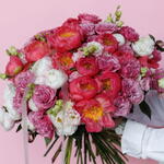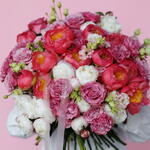 rose pink - 19 pcs eustoma pink - 10 pcs peony white - 13 pcs peonies coral charm - 12 pcs pack - 2 pcs