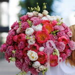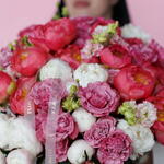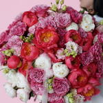 The most trendy flowers are collected in an exquisite floral composition called Camalia. This bouquet consists of numerous garden roses, peonies, eustomas, and roses. All flowers are grown in the best greenhouses and their quality is beyond the highest expectations. The bouquet is made in bright pink, light rose, and white colours which create a balanced composition. This is a perfect match for birthday presents, or you can buy the Camalia bouquet as a date gift for your soul mate. It is also a wonderful interior decoration idea as flowers’ longevity will please your eyes for a week and more.