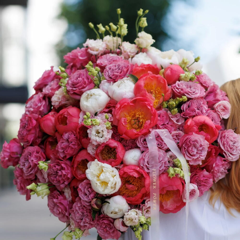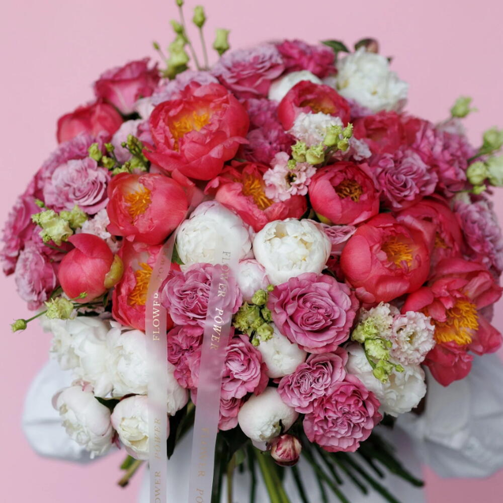 The most trendy flowers are collected in an exquisite floral composition called Camalia. This bouquet consists of numerous garden roses, peonies, eustomas, and roses. All flowers are grown in the best greenhouses and their quality is beyond the highest expectations. The bouquet is made in bright pink, light rose, and white colours which create a balanced composition. This is a perfect match for birthday presents, or you can buy the Camalia bouquet as a date gift for your soul mate. It is also a wonderful interior decoration idea as flowers’ longevity will please your eyes for a week and more.