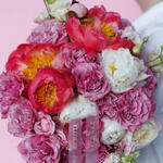rose pink - 7 pcs eustoma pink - 5 pcs peony white - 4 pcs pack - 1 pcs peonies coral - 4 pcs