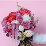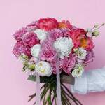 A trendy and exquisite floral composition, the Camalia bouquet blends garden roses, lush peonies, eustomas, and classic roses. Grown in the best greenhouses, these premium flowers boast vibrant pink, light rose, and crisp white tones for a balanced display. Perfect for: Birthdays, romantic dates, or as a stunning interior decoration. Enjoy the exceptional longevity of this vibrant arrangement for a week and more!