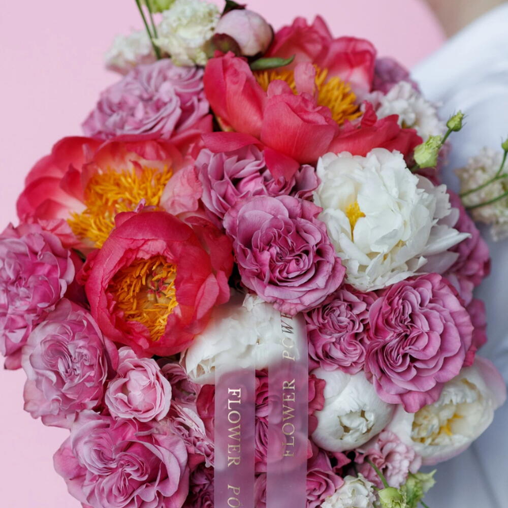 Camalia: Small Size Bouquet of Peonies, Roses and Eustoma
