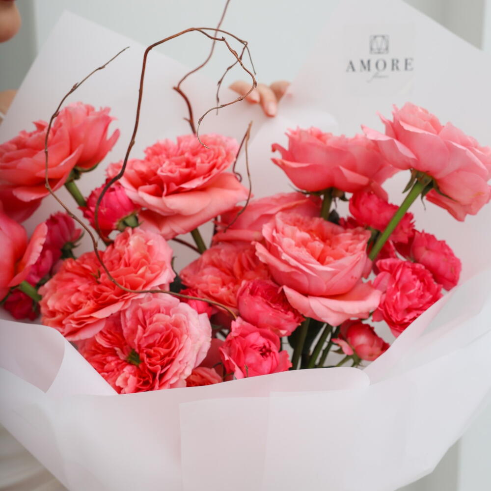 julietta raspberry - 4 pcs magnolia branch - 1 pcs candy expression - 11 pcs