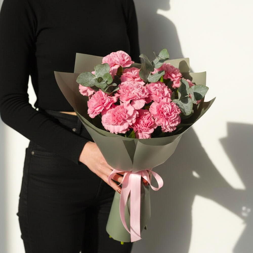 A graceful mono bouquet of 11 fresh pink carnations, known for their soft texture, long-lasting beauty, and gentle charm. Perfect for birthdays, appreciation, thank-you gestures, or everyday floral gifting.