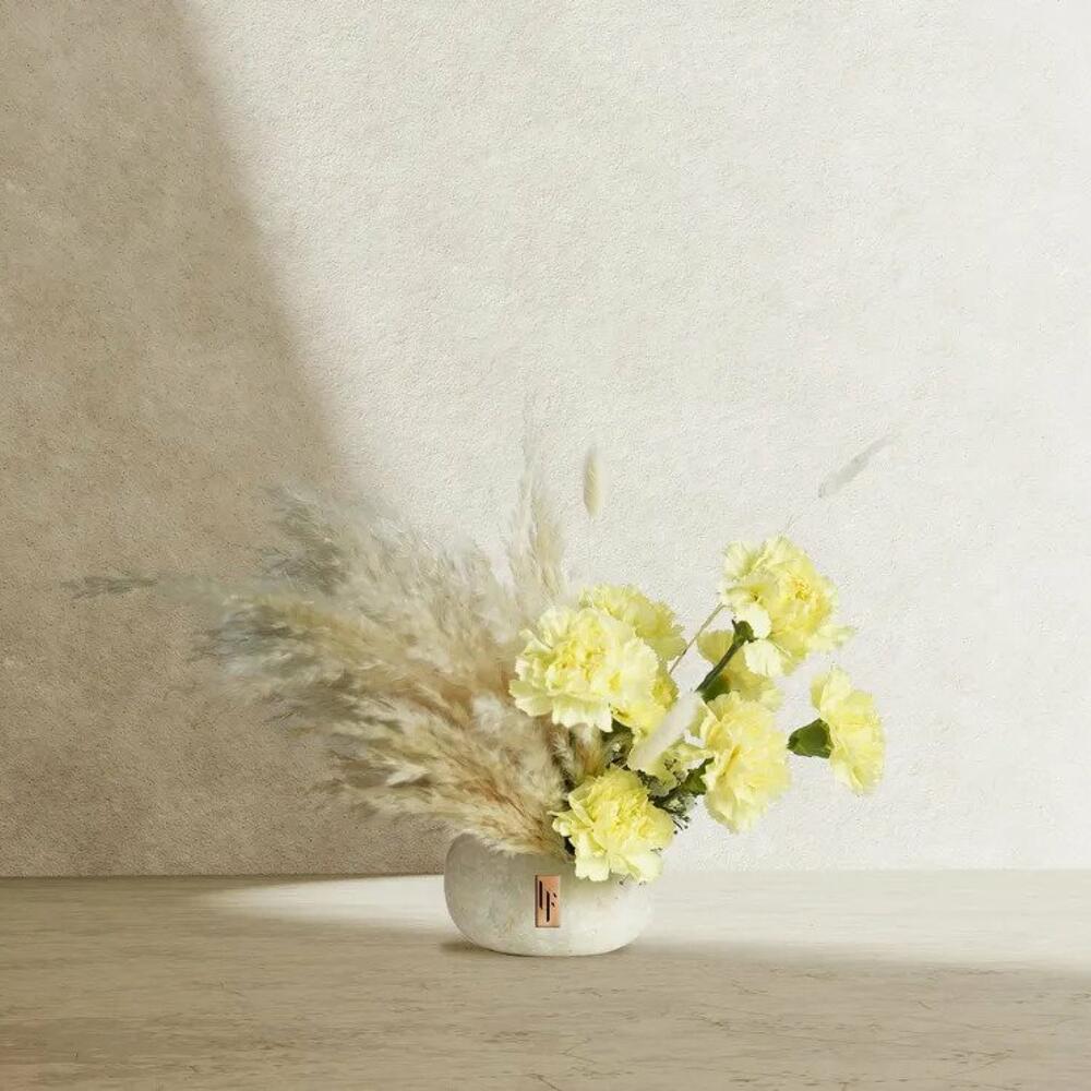 carnations - 9 pcs lagurus - 5 pcs marble pebble - 1 pcs bleach pampas - 2 pcs