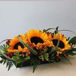 Sunflower - 3 pcs Green leaves - 5 pcs red hypericum - 7 pcs