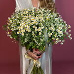 A delightful, sun-kissed bouquet of 50 fresh chamomile flowers that radiates joy and tranquility. The simple, crisp white petals and yellow centers bring a feeling of comfort and pure happiness. Perfect for cheering up a friend, get well wishes, birthdays, or simply to brighten someones day with a touch of natural charm.