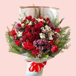 Greenery - 10 pcs white flowers - 10 pcs red flowers - 15 pcs purple flowers - 6 pcs