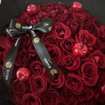 ✨ 75 Red Roses with 6 Decorative Cherries – Luxury Signature Bouquet ✨ Indulge in pure elegance with this breathtaking arrangement featuring 75 premium red roses, hand-selected for their lush petals and deep, velvety colour. Nestled among the roses are 6 glossy decorative cherries, adding a unique and playful touch to the romantic design. Wrapped in sleek black luxury packaging and finished with a signature branded ribbon, this bouquet exudes sophistication and drama—perfect for anniversaries, grand gestures, celebrations, or moments that deserve something truly unforgettable. A statement piece that speaks love, passion, and style in every detail.