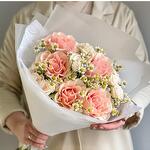 pink mondial - 5 pcs daisy bush - 4 pcs wrapping paper - 4 pcs pink spray roses - 3 pcs