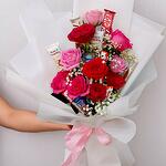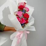A delightful combination of vibrant blooms and indulgent chocolates, this small bouquet exudes charm and sweetness. Perfectly curated to convey your sentiments, its a tasteful gesture that beautifully blends the elegance of flowers with the decadence of fine chocolates.