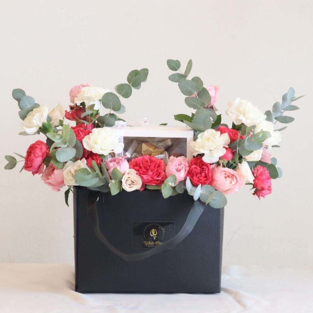 Eucalyptus - 1 pcs Spray rose - 1 pcs carnation - 1 pcs chocolates - 500 g bombastic rose - 1 pcs