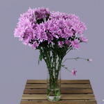 A stunning arrangement of purple chrysanthemums elegantly presented in a stylish vase. The rich, vibrant purple hues symbolize admiration and elegance, while the intricate petals add depth and texture to the display. Perfect for any occasion, this arrangement exudes charm and sophistication, bringing a touch of natural beauty to any space. Whether as a thoughtful gift or a decorative accent, these chrysanthemums create a warm and inviting atmosphere with their timeless appeal.