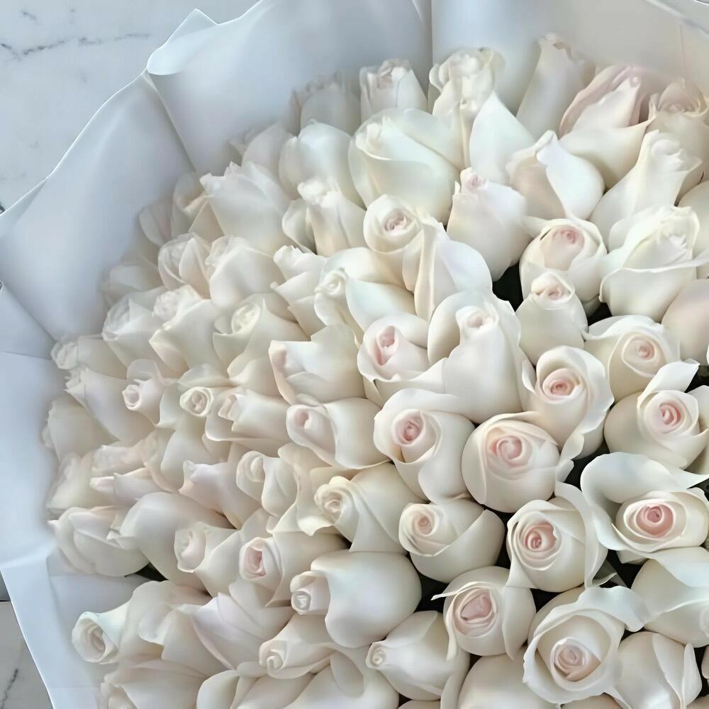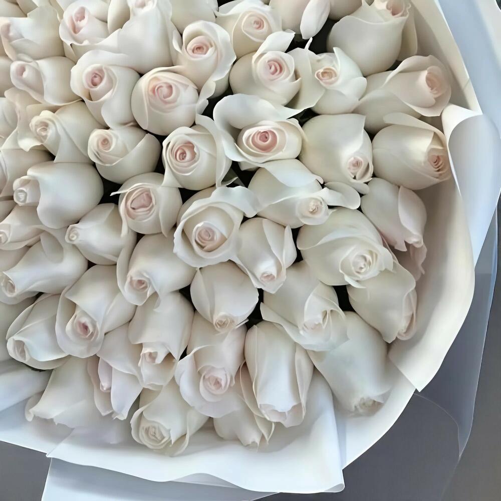 Cjfy Bouquet – 79 Elegant Off-White Roses in Classic White Wrapping