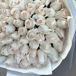 The Cjfy Bouquet is the embodiment of purity and timeless beauty, featuring 79 exquisite off-white roses gently wrapped in 8 layers of premium white wrapping and tied with 2 elegant white ribbons. This stunning floral arrangement radiates grace, elegance, and sophistication, making it a perfect gift for weddings, anniversaries, sympathy gestures, or simply to convey sincere emotions with a refined touch. Care Instructions: Before placing the roses in a vase, re-cut the stems at a sharp angle using a clean knife or garden shears. Use cool, fresh water and refresh it daily. Re-trim the stems each time you change the water. Avoid placing the bouquet near heaters, direct sunlight, or drafts. A cool environment will help preserve the freshness and beauty of the roses for a longer time.