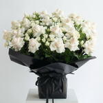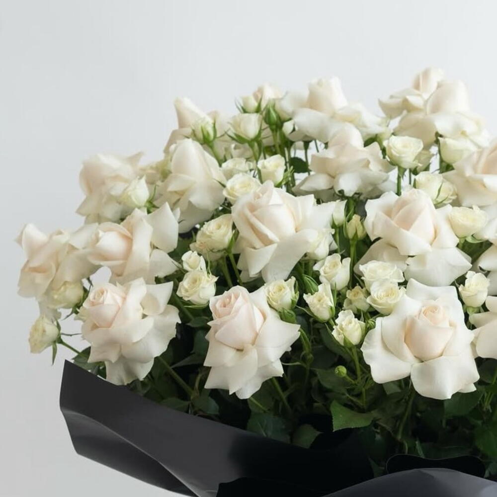 Clair de Nuit captures the enchanting elegance of moonlight, turning every moment into a luxurious, unforgettable gesture. Featuring 20 pristine white roses and 50 delicate white spray roses, each bloom is meticulously arranged in a sleek black wrap, tied with a subtle, sophisticated finish to create a large bouquet that radiates mystery, refinement, and timeless beauty. Perfect for your girlfriend, wife, fiancée, or the special woman who lights up your life, Clair de Nuit is ideal for romantic evenings, anniversaries, milestone celebrations, or surprise gestures that demand attention. Every rose is selected for freshness, flawless petals, and perfect symmetry, ensuring this luxury white rose arrangement becomes a statement of admiration and elegance. Send it from a devoted partner, loving husband, or admirer to convey deep affection, heartfelt devotion, or intimate admiration. The Clair de Nuit bouquet is more than flowers — it’s a luxury experience, a poetic gesture, and a luminous expression of love. Available for same-day delivery in Dubai and across the UAE, it perfectly balances romance, elegance, and the mysterious beauty of night. ✨ Because some women deserve to shine like moonlight.