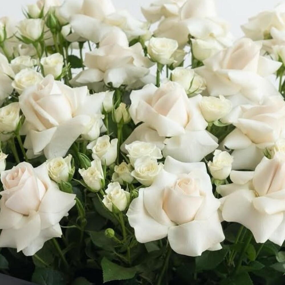 White rose - 20 pcs white spray rose - 50 pcs