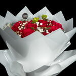Red rose - 12 pcs Ruscus - 3 pcs gypso - 3 pcs