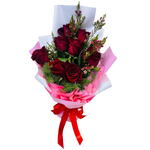 💐 Includes: • 9 Premium Pink Roses • 2 Stem Filling Flower(Wax OR Gypsum) • Greenery Fillings • Classic Pink White Wrapping • Red Colored Satin Ribbon • Free Personalized Card (IN ENGLISH) ❤️ Ideal for: Anniversary | Gift | Just Because | Special Moments | Any Occasion