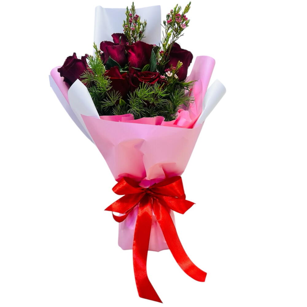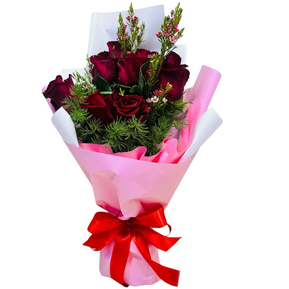 💐 Includes: • 9 Premium Pink Roses • 2 Stem Filling Flower(Wax OR Gypsum) • Greenery Fillings • Classic Pink White Wrapping • Red Colored Satin Ribbon • Free Personalized Card (IN ENGLISH) ❤️ Ideal for: Anniversary | Gift | Just Because | Special Moments | Any Occasion