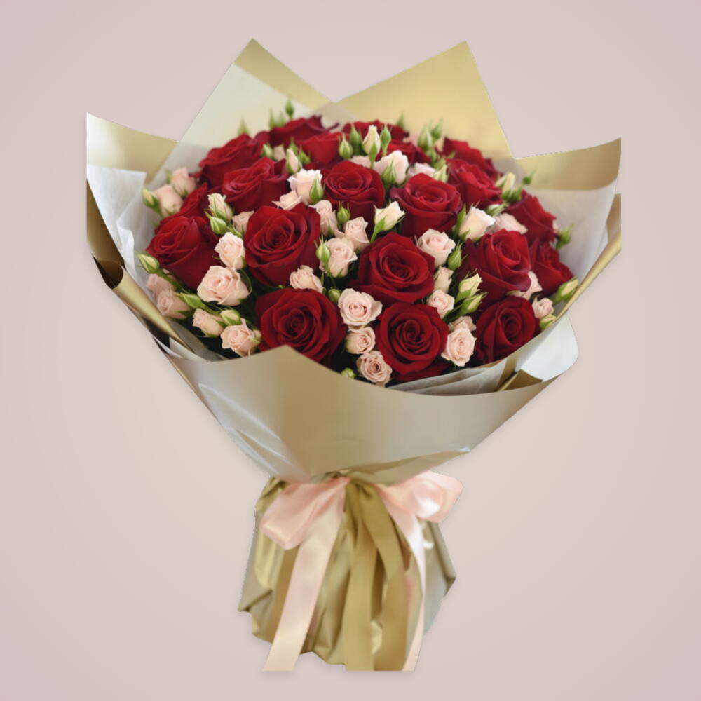 stem pink baby rose - 1 pcs stem red rose - 10 pcs