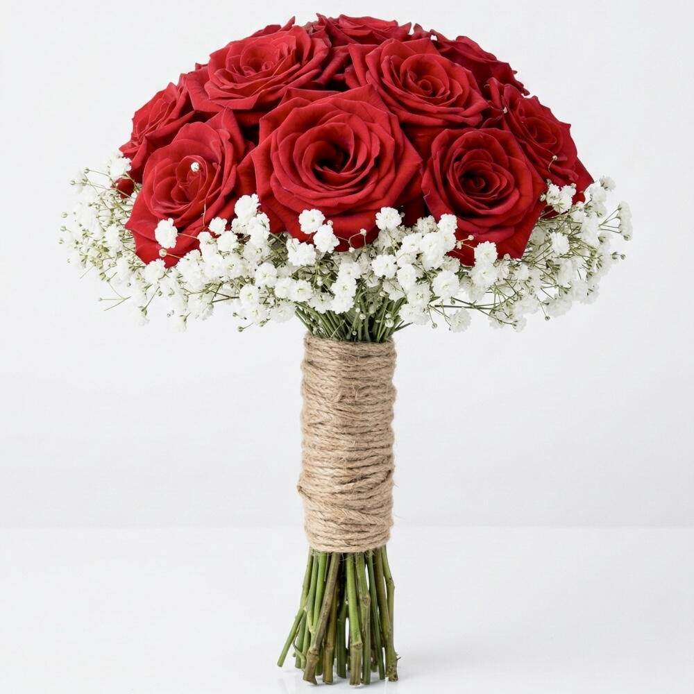 11 fresh red roses beautifully arranged with delicate gypsophila fillers. A timeless symbol of love and passion.