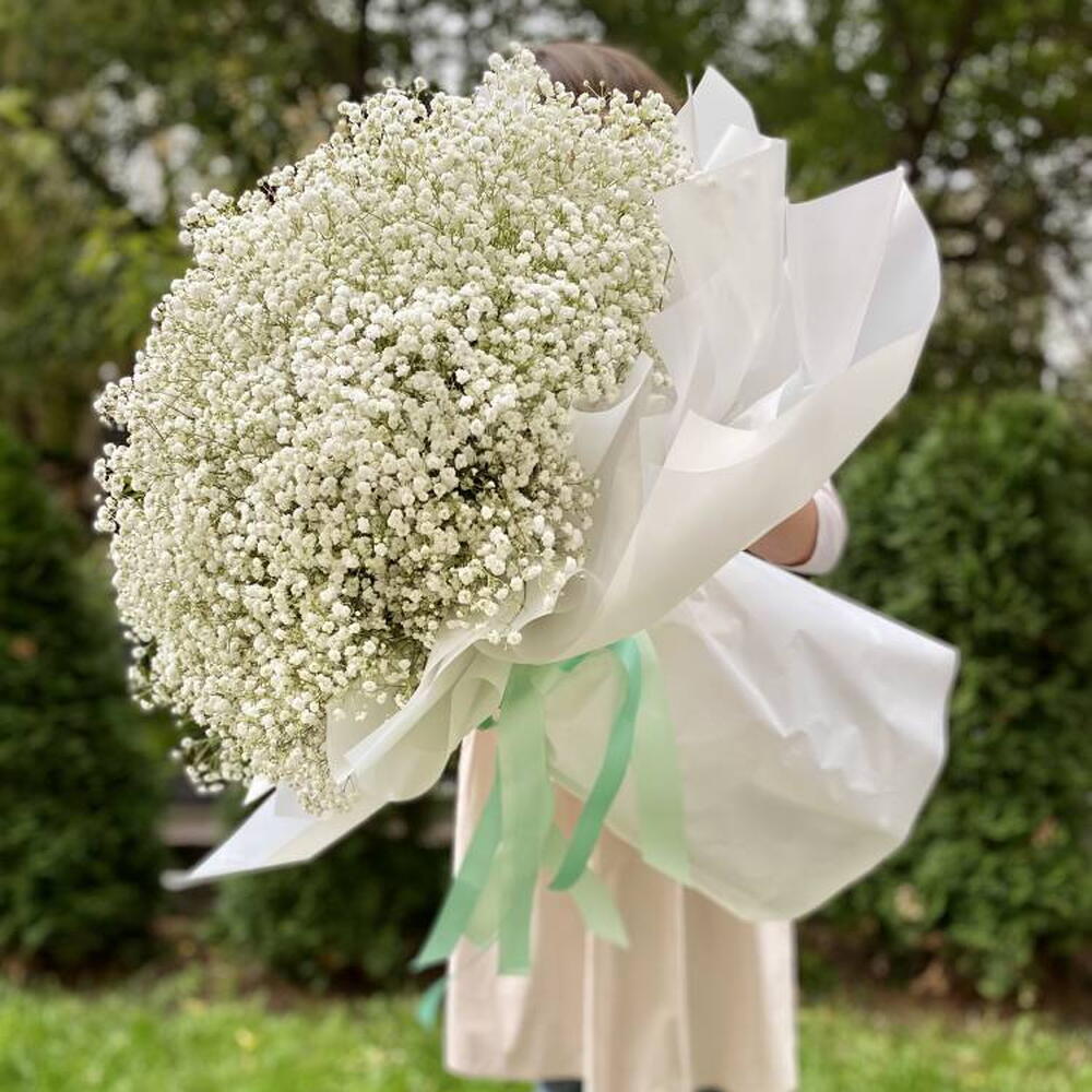Composition: Gypsophila - 41, wrapping - 7, ribbon - 2 Sizes: WIDTH - 120CM; HEIGHT - 95CM; LENGTH - 95CM; (including packaging) Size: 120 x 95 x 95 cm