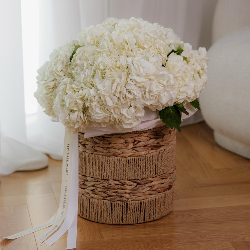 Experience the stunning simplicity and charm of our Clouds Basket, composed of 15 meticulously chosen white hydrangeas. These delicate blossoms radiate pure beauty, making this exceptional bouquet an exquisite gift for any occasion. Let this opulent arrangement express your sentiments unspoken with grace, style, and elegance.