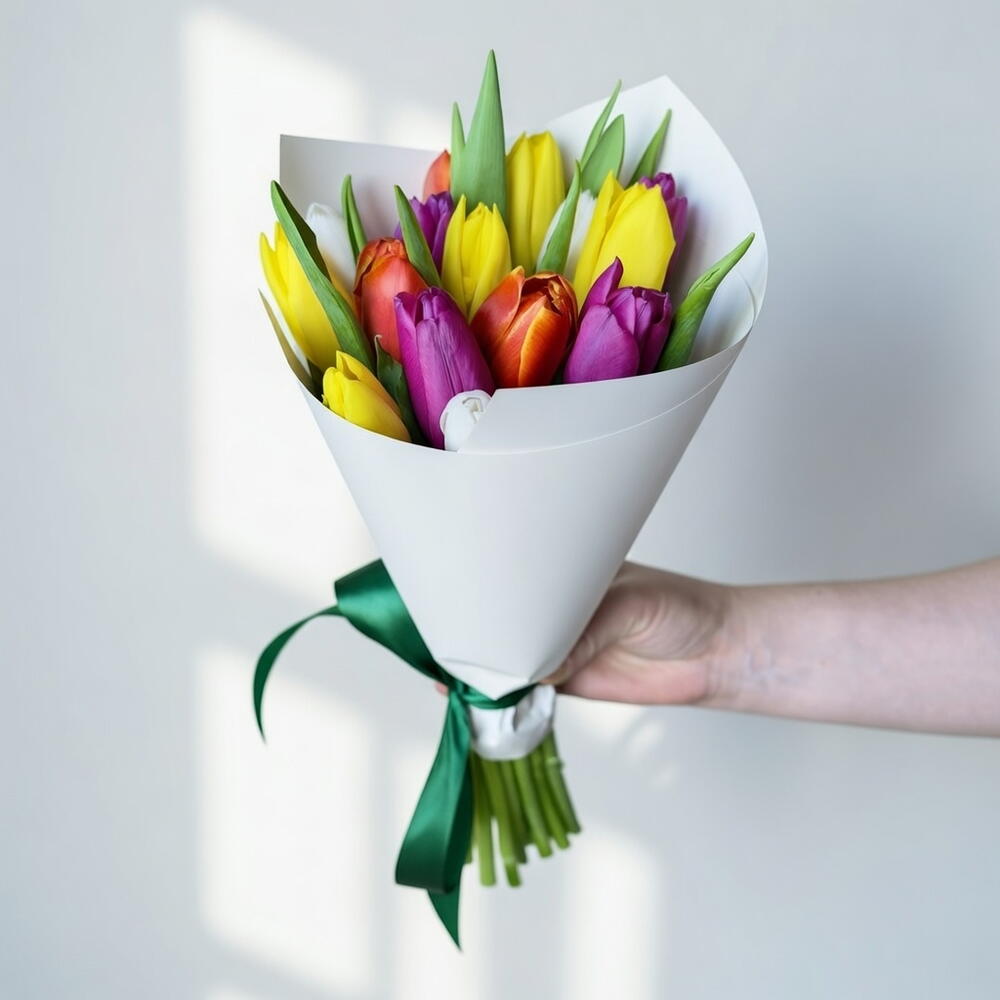 Color Splash is a charming mono-bouquet featuring fifteen fresh tulips in a vibrant mix of seasonal shades. The lively combination of colors creates a cheerful and uplifting arrangement that instantly brightens any space. Compact yet expressive, this bouquet makes a delightful surprise not only for International Women’s Day but for birthdays, graduations, family occasions, or simply to add color to an ordinary day. Each bloom contributes to a harmonious palette that symbolizes joy, positivity, and heartfelt appreciation. Carefully wrapped for a clean and elegant finish, this arrangement is designed to deliver freshness, brightness, and a touch of spring energy with every stem.