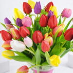 Elevate any moment with a graceful arrangement of 31 premium mixed tulips, beautifully presented in a sleek clear glass vase. Showcasing a harmonious blend of vibrant colors, each bloom is thoughtfully arranged in a natural, organic style that exudes effortless elegance.Perfect for birthdays, celebrations, or simply enhancing everyday spaces, this timeless floral piece brings light, color, and a sense of quiet luxury into any setting.