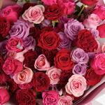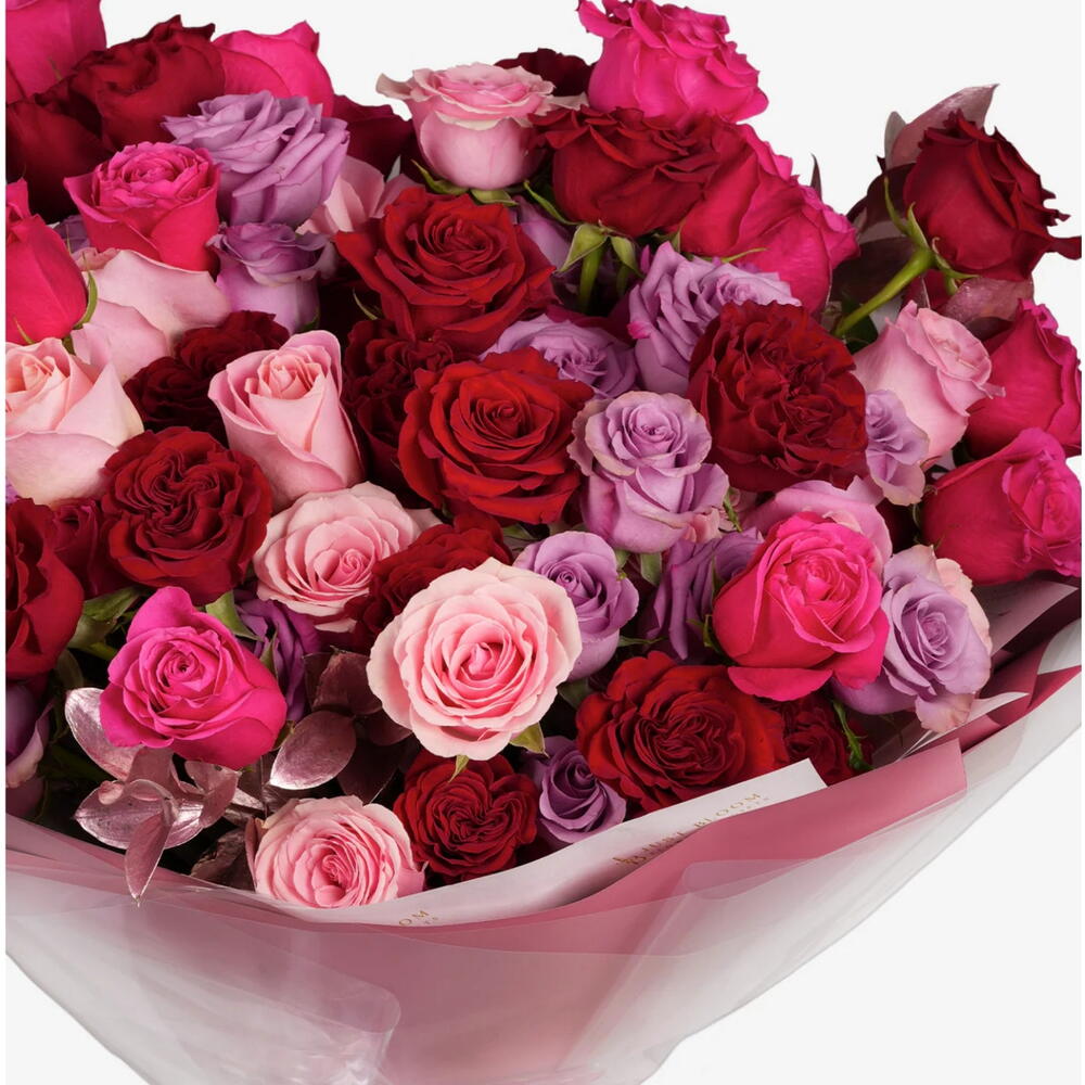 Courage is a vibrant and uplifting bouquet designed to celebrate strength, love, and heartfelt emotions. This striking arrangement features 20 classic red garden roses, 20 hot pink blooms, 20 soft pink roses, and 20 rich purple flowers, creating a bold, colorful statement. Each bloom is carefully selected for vivid color, freshness, and long-lasting beauty, forming a bouquet that radiates confidence, admiration, and joy. Perfect for birthdays, congratulations, thank you gifts, or simply to encourage someone special, Courage conveys a message of boldness, support, and heartfelt thoughtfulness. Its vibrant mix of reds, pinks, and purples makes it ideal for friends, family, mentors, or loved ones, bringing cheer, inspiration, and warmth to any occasion. Wrapped beautifully, this bouquet transforms a simple gesture into a memorable moment of love and encouragement. Use Cases / Gifting Ideas Celebrate birthdays, achievements, or personal milestones Uplifting just because gift for a loved one Thoughtful thank you or encouragement bouquet Brighten someone’s day with a bold, colorful floral arrangement Perfect gift for friends, family, mentors, or someone needing inspiration