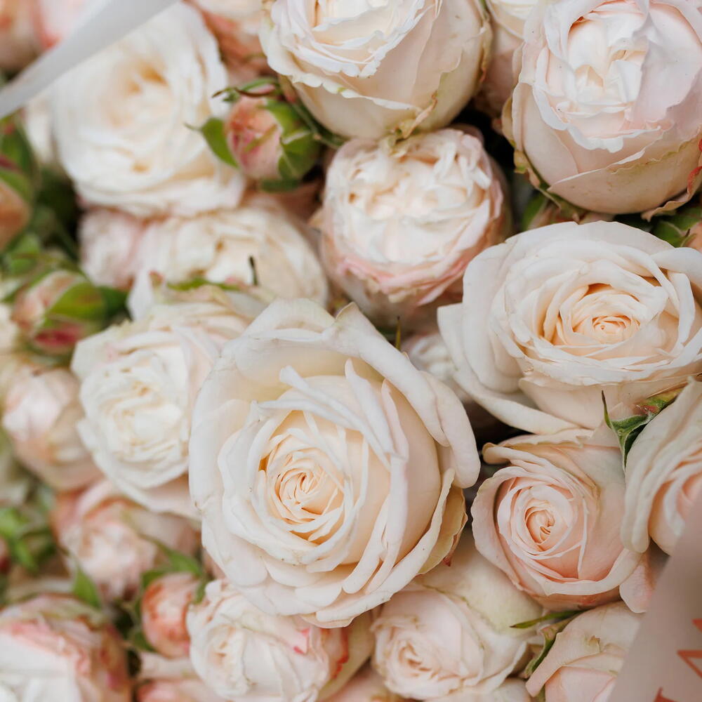 A delicate and charming medium bouquet featuring lush cream garden spray roses. These intricate blossoms evoke a sense of gentle warmth, admiration, and grace. A perfect, understated gift for occasions such as birthdays, Mothers Day, or simply to express heartfelt thanks and appreciation.