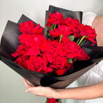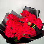 A bold and romantic bouquet of premium red roses, elegantly wrapped in stylish black paper and finished with a rich red ribbon. This classic arrangement symbolizes deep love, passion, and timeless elegance—perfect for anniversaries, Valentine’s Day, proposals, birthdays, or any moment that deserves a powerful expression of love. Handcrafted by expert florists using fresh, long-stem roses for maximum beauty and fragrance.