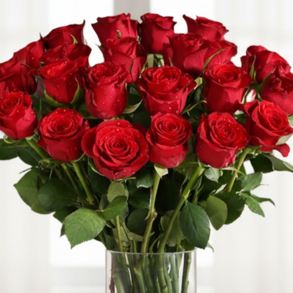 Bold, romantic, and unforgettable, the Crimson Devotion arrangement showcases 21 luxurious red roses, hand-selected for their velvety petals and deep, passionate hue. Expertly presented in an elegant glass vase, this bouquet radiates beauty, desire, and commitment. Perfect for anniversaries, proposals, or grand romantic gestures, this timeless arrangement speaks directly from the heart and leaves a lasting impression. Ready to show your devotion? Order Crimson Devotion today and make a statement that will be remembered forever.