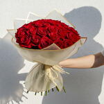 Command attention with Crimson Elegance, a striking bouquet of 25 velvety red roses cocooned in a shimmering silver wrap—the perfect fusion of classic romance and high‑fashion edge. Each Grade‑A stem is cut at dawn for peak freshness, then precisely spiralled by our master florists to create a flawless dome that radiates confidence and devotion. Why Crimson Elegance Stands Apart Symbolic Power: Red roses shout passion and deep respect; the metallic silver wrap adds a layer of modern sophistication—turning a traditional gesture into a luxe statement piece. Premium Craftsmanship: Long‑stem roses sourced from sustainable farms, hydrated for extended vase life and intense scarlet saturation. Versatile Grandeur: Ideal for anniversaries, milestone birthdays, corporate VIP gifts, or any moment demanding unapologetic glamour. Photo‑Ready Finish: Matte‑metallic parchment and a satin ribbon ensure the bouquet pops on Instagram and in real life—no filter needed. Eco‑Conscious Touch: Recyclable wrap and biodegradable hydration sleeve keep your romance green while your love burns red. Same‑Day UAE Delivery: Because bold gestures shouldn’t wait—order by 5 p.m. and we’ll have luxury at their doorstep within hours. Gift Crimson Elegance today and let twenty‑five scarlet blooms wrapped in silver whisper a love story written in timeless luxury and unapologetic style.