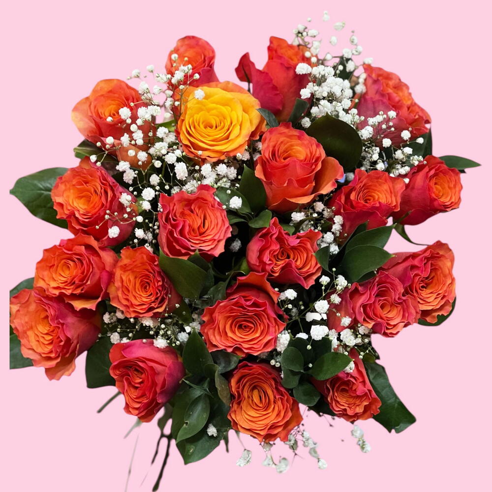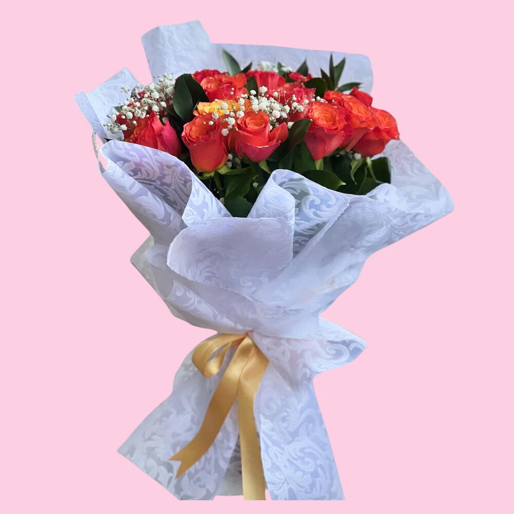 This bold bouquet is a dramatic mix of passionate red roses with a single striking orange rose as its fiery centerpiece. Symbolizing love with a spark of individuality, it’s perfect for expressing heartfelt emotions with a unique twist.