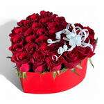 Arrangement of 31 red roses in a heart shape box