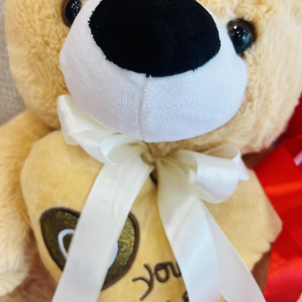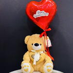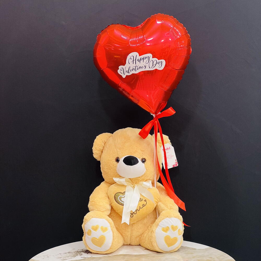 43cm height and 33cm width bear holding a balloon or a teddy bear with balloons is a popular symbol representing love, affection, celebration and joy. It is commonly used as a gift to convey romantic feelings, friendship or congratulations often associated with Valentines Day, birthdays or get well soon messages.
