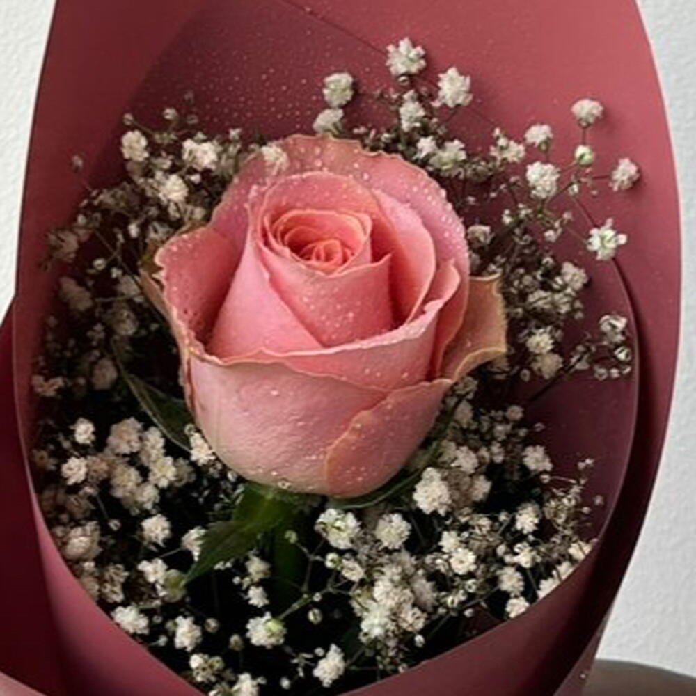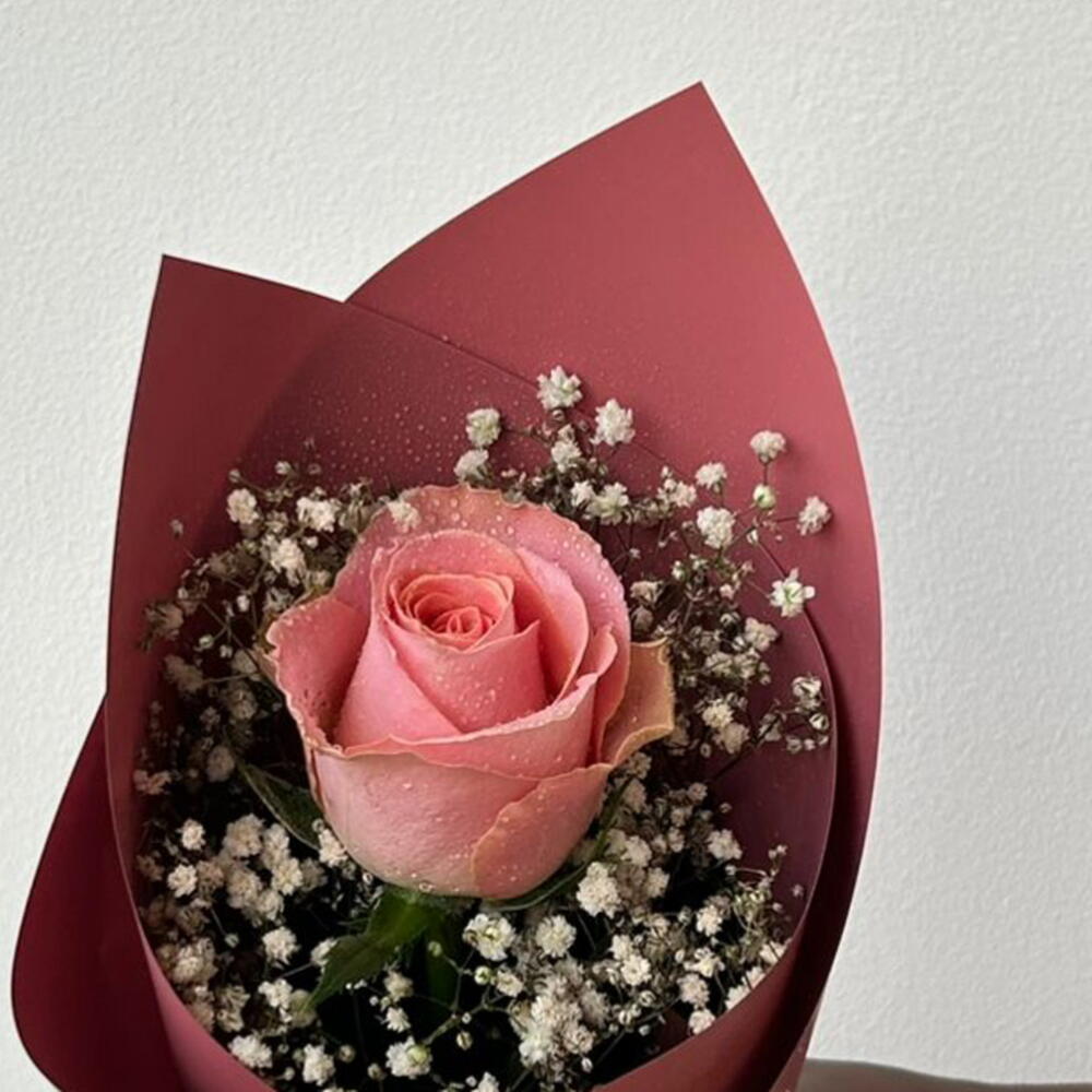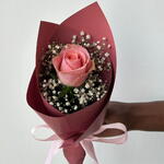 Pink rose - 1 pcs Gypsophila - 2 pcs