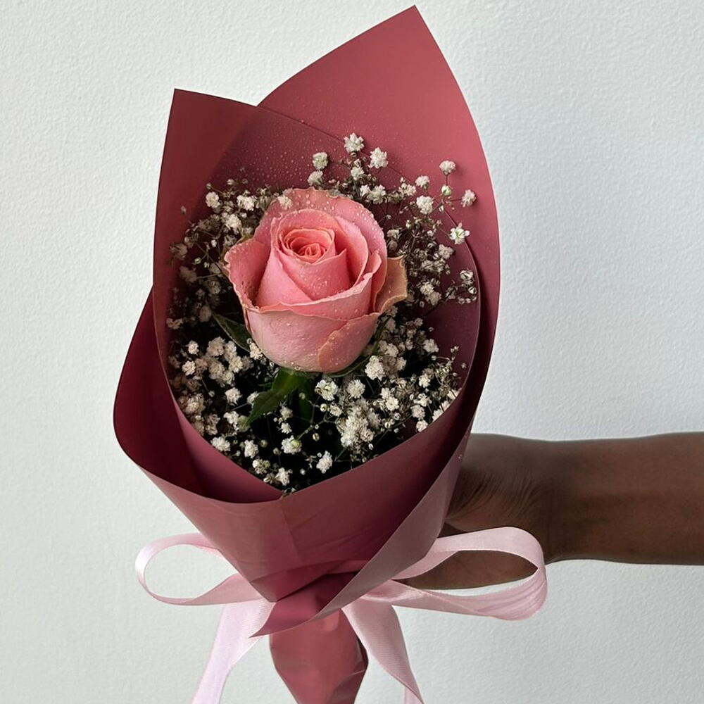 Cute Single Pink Rose Bouquet