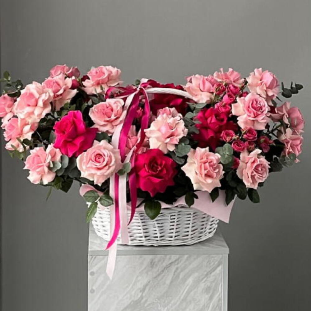 Pink rose - 20 pcs pink spray rose - 30 pcs euclyptus - 30 pcs hot pink roses - 10 pcs