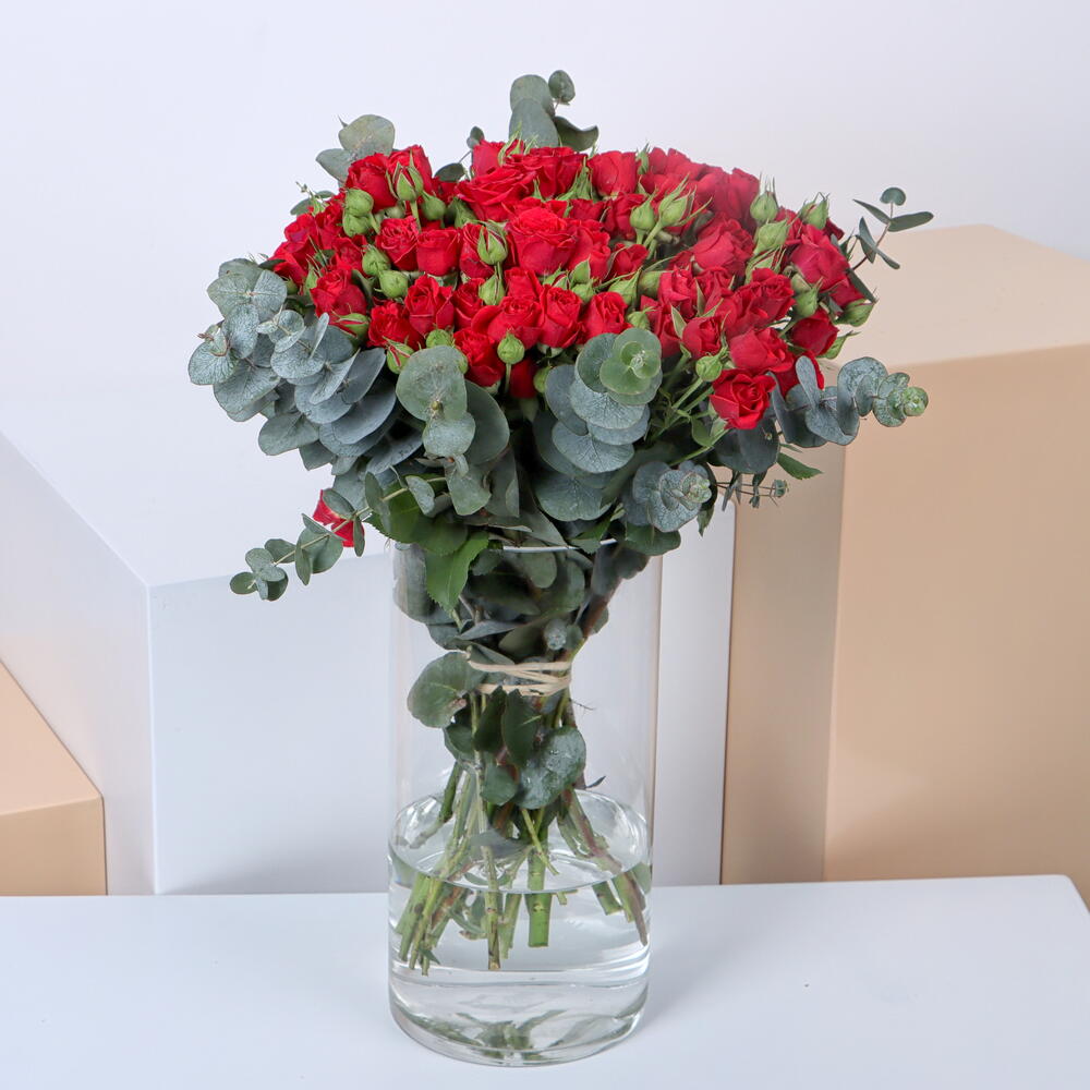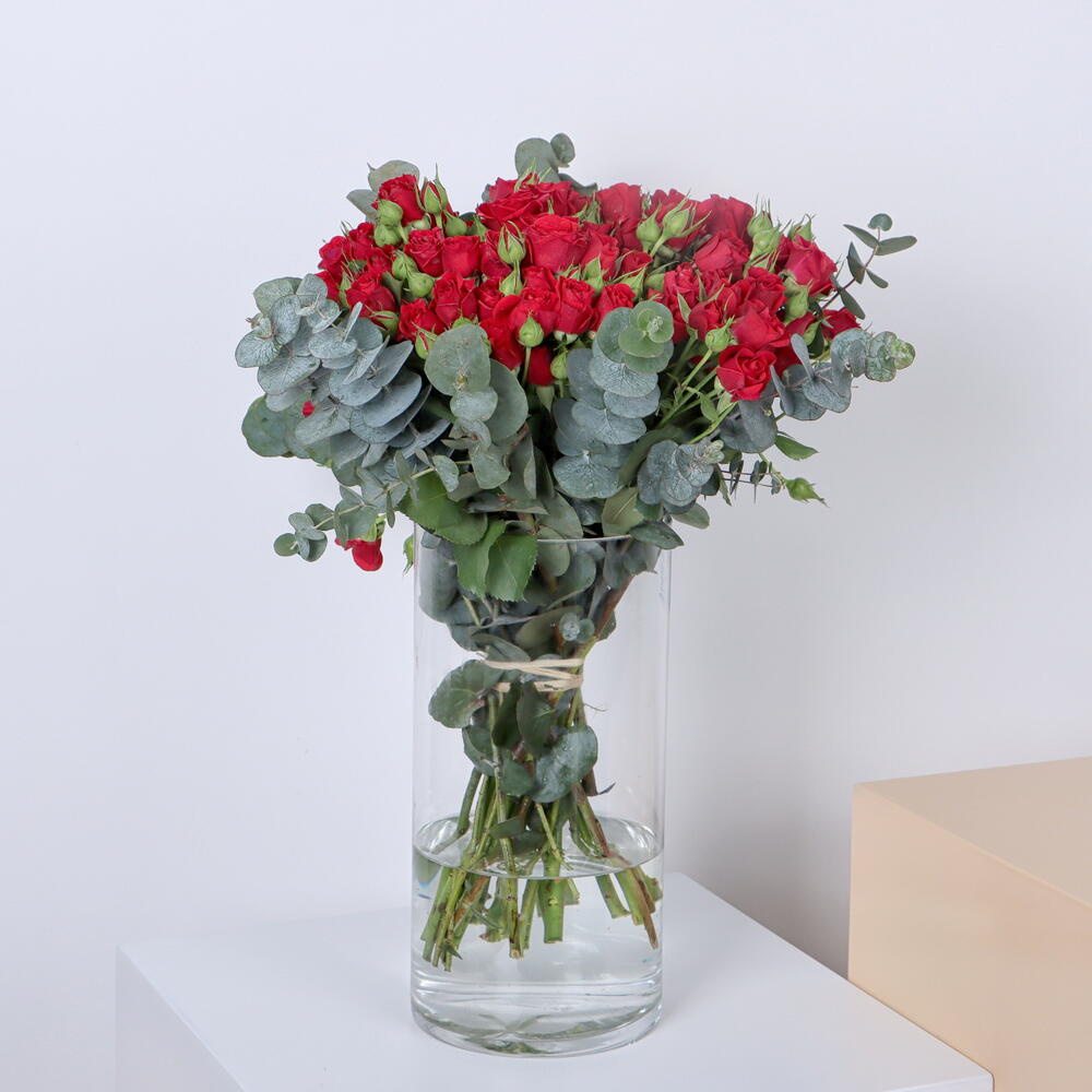 Eucalyptus - 7 pcs cylinder - 1 pcs baby rose red - 21 pcs