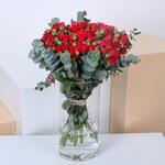 21 Red baby roses in a cylinder filled with water with a beautiful arrangement