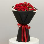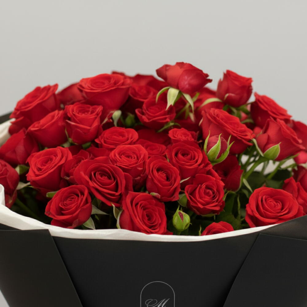 51 Red Spray Roses in Black Wrap with Red Ribbon – Luxury Romantic Bouquet Turn heads with this 51 Red Spray Rose bouquet, beautifully styled in black wrapping paper and finished with a bold red ribbon. Designed for modern romance, this bouquet is perfect for those who love stylish, hot, and luxury floral arrangements. Red spray roses are known for their multiple small blooms on each stem, giving this bouquet a full, rich, and premium look. The deep red color symbolizes love, passion, romance, and desire, while the black wrap adds a trendy, elegant, and high-fashion touch. The red ribbon completes the design, making it dramatic, eye-catching, and unforgettable. This bouquet is ideal for romantic gifts, Valentine’s Day flowers, anniversaries, birthdays, proposals, date nights, and surprise flower delivery. Whether you are gifting your partner, spouse, or someone special, this bouquet delivers a powerful message of love and confidence. Perfect for: Romantic flower gifts Valentine’s Day rose bouquet Anniversary and birthday surprises Luxury flower delivery Modern and stylish floral arrangements Product Highlights: 51 fresh red spray roses Premium black wrapping paper Elegant red ribbon finish Long-lasting, fresh flowers Stylish, bold, and romantic design This 51 red spray rose bouquet in black wrap is a perfect choice if you are searching for luxury roses, romantic red flowers, modern rose bouquet, or stylish flower gift. Bold, passionate, and beautifully arranged—this bouquet makes every moment unforgettable.