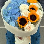 Sunflower - 4 pcs hydrangea blue - 2 pcs wrapping paper - 4 pcs ohara white - 5 pcs
