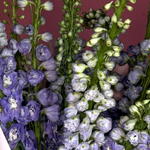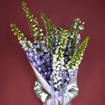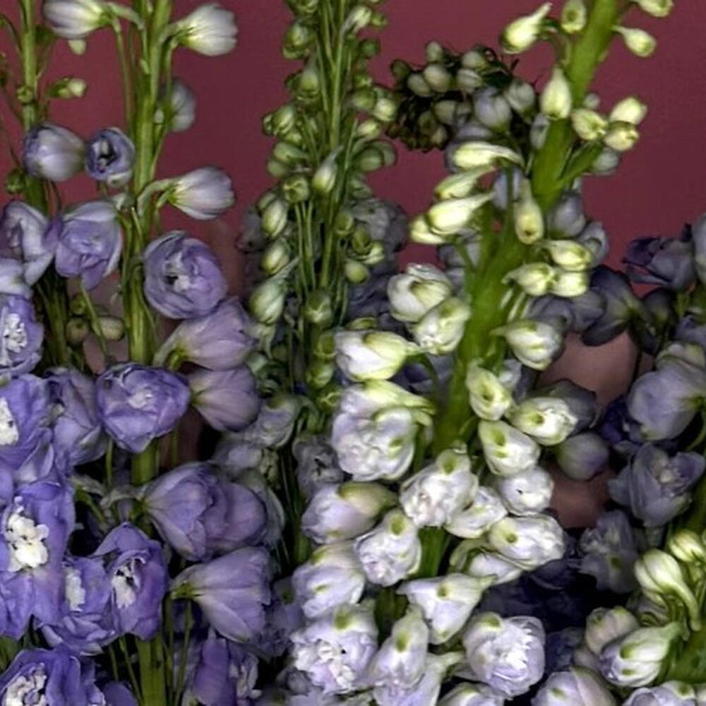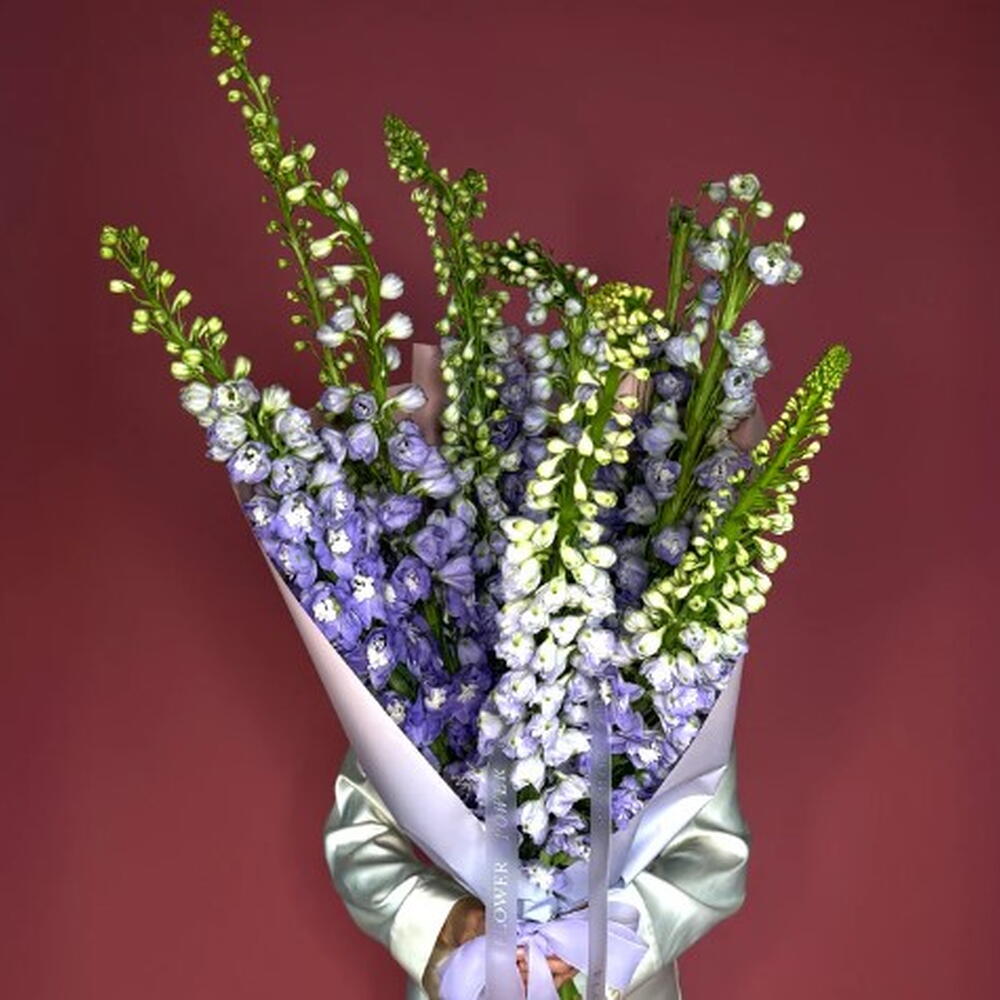 A delicate and ethereal bouquet of 10 purple Delphinium blossoms. These majestic, spire-shaped flowers symbolize joy, open-heartedness, and new opportunities. A perfect choice for birthdays, congratulations, thank you gifts, or simply to convey serene happiness and elegance.