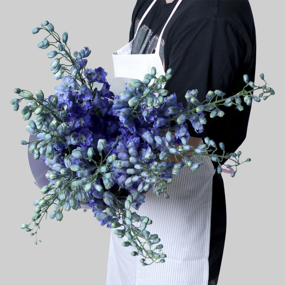 Details And Size: 9 Stems Delphinium blue with height 50 to 100 cm height depending on variety. Wrapping: All bouquet will be wrapped in our locally made from sustainably sourced materials and is 100% recyclable and natural. All bouquet finishes with a Grosgrain Ribbon. Fresh Flower Guarantee: We guarantee 100% fresh flowers and happiness for all orders. If you are not happy with your order we will replace the item soon. Care Instructions: Remove the wrapping and put in fresh water. Cut the stems from the bottom at 45 degree in every 3 days and change water everyday.