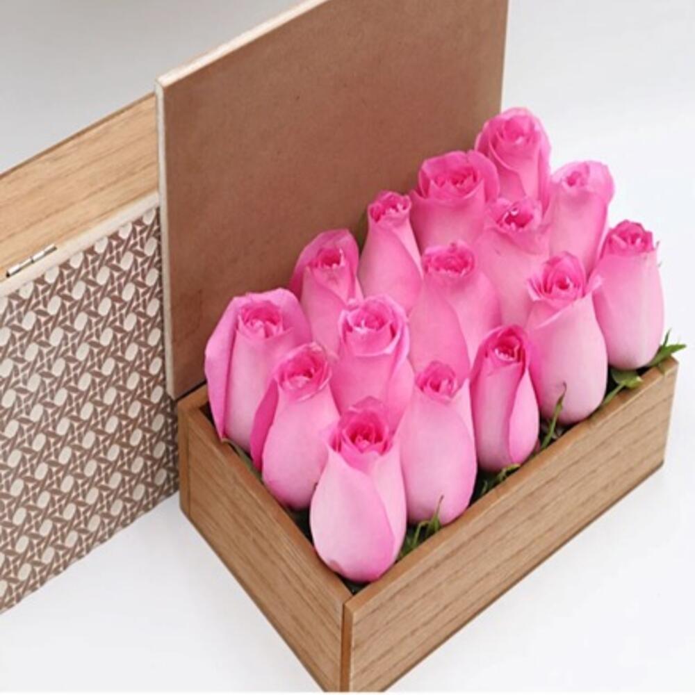 pink roses - 15 pcs arranged in a premium wooden box - 1 pcs
