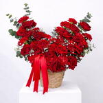Eucalyptus - 2 pcs carnation red - 20 pcs gypso - 2 pcs premium red rose - 17 pcs blad pistachio - 3 pcs