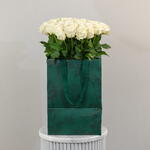 white roses - 51 pcs protective wrapping - 1 pcs hydration pack - 1 pcs branded premium carry bag - 1 pcs personalized message envelope card - 1 pcs branded rose art ribbon - 1 pcs branded tag - 1 pcs